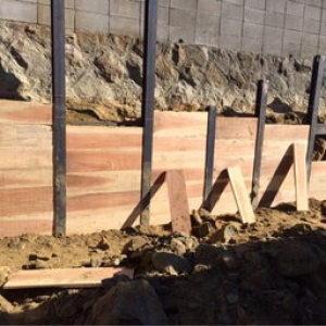 親杭横矢板工法とはH形鋼同士の間に木製の矢板を設置していく土留工法です。 オーガ先行…