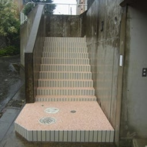 既存階段リフォーム 階段立上り部分はタイル貼り 踏み部分はフロアービーズで化粧…